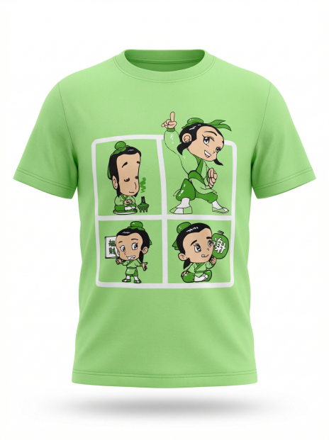 简介:使用卡通活泼的图案是配合棋类活动时候穿着,拉近小朋友的关系。尺码较宽松,符合T恤休闲感觉,配合活动方便。使用浅绿色,更青春活泼